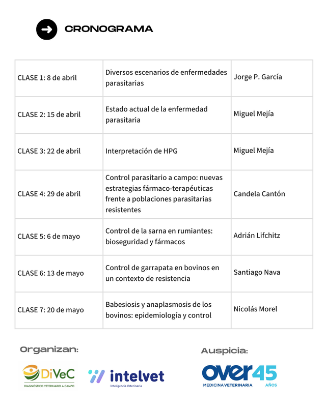 | 6 de mayo | Control de la sarna en rumiantes: bioseguridad y fármacos | Adrián Lifchitz